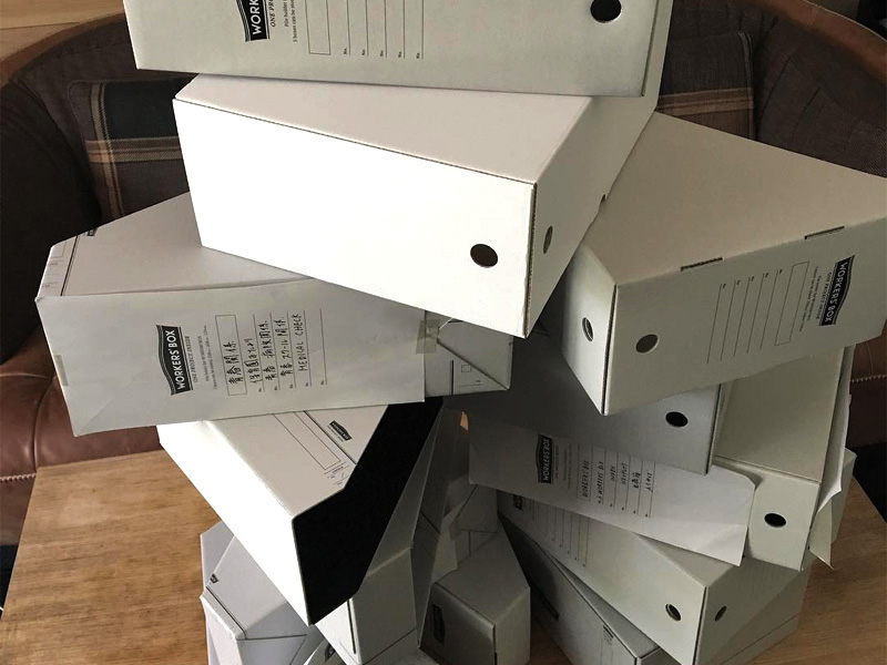 終わったものは他のファイルや箱に移し替える手間もなく、そのまま書庫に並べられる。