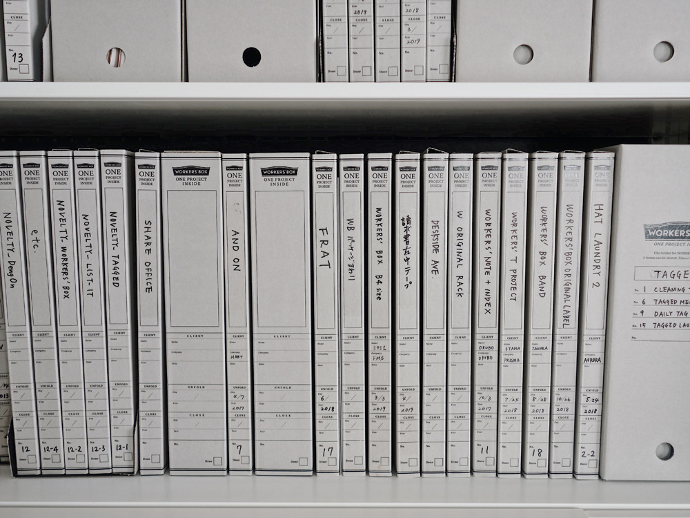「WORKERS’BOX」はもともと書類の整理が苦手な弊社デザイナーが「案件ごとにポイポイ放りこむだけで書類を片づける」という目的で開発したボックス。