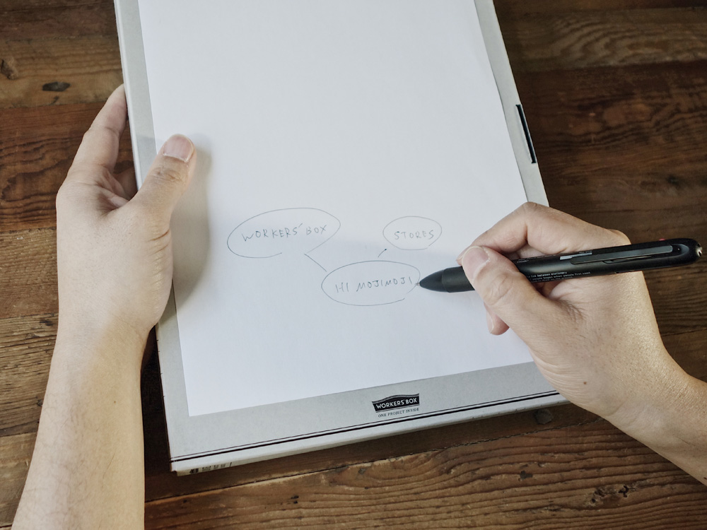 ほどよい硬さがある本体の裏面にコピー用紙を置いて、ペンを走らせています。