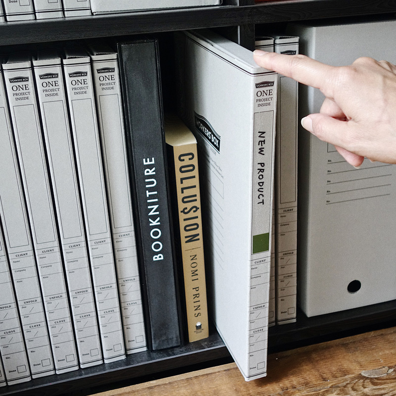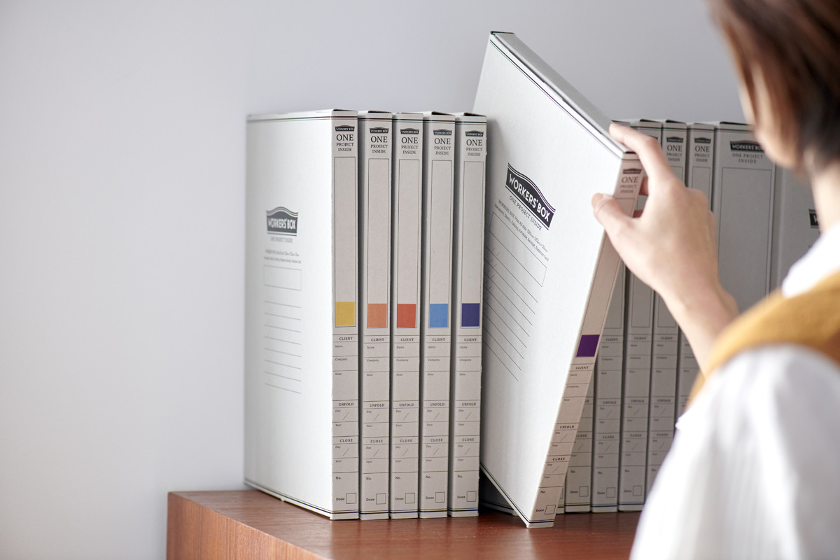 グレーの外観でおなじみ「WORKERS'BOX」の世界観を保ちつつ、シックなカラーで色分けされた透明ラベルで、ますます書類の管理がはかどります。