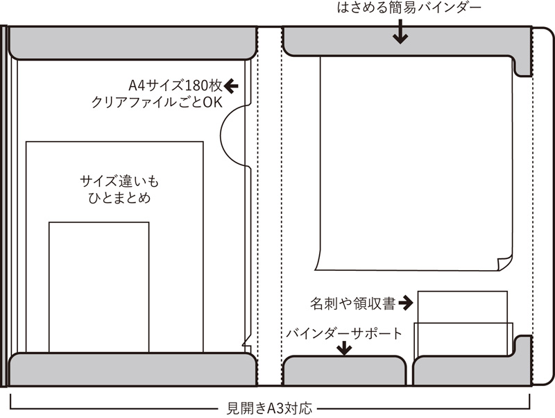 ハイモジモジ松田そう。名刺や領収書を入れるポケットはひとつで十分かなって考え直した。それよりも上のバインダーで留めた書類を下でも支える機能がほしかった。