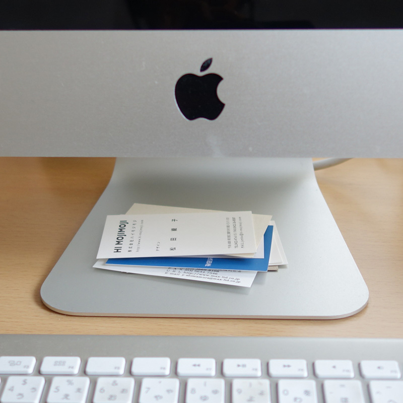 わたし、いつもMacの下に名刺を置いてるでしょ。