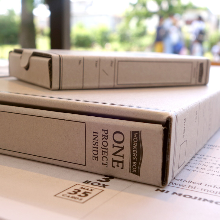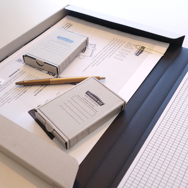 あと、A4サイズの「WORKERS'BOX」に入れて名刺ケースとして持ち運んじゃってます。何に使うかはみなさん次第ですけれど、シンプルに名刺ケースとしても使えますからね。
