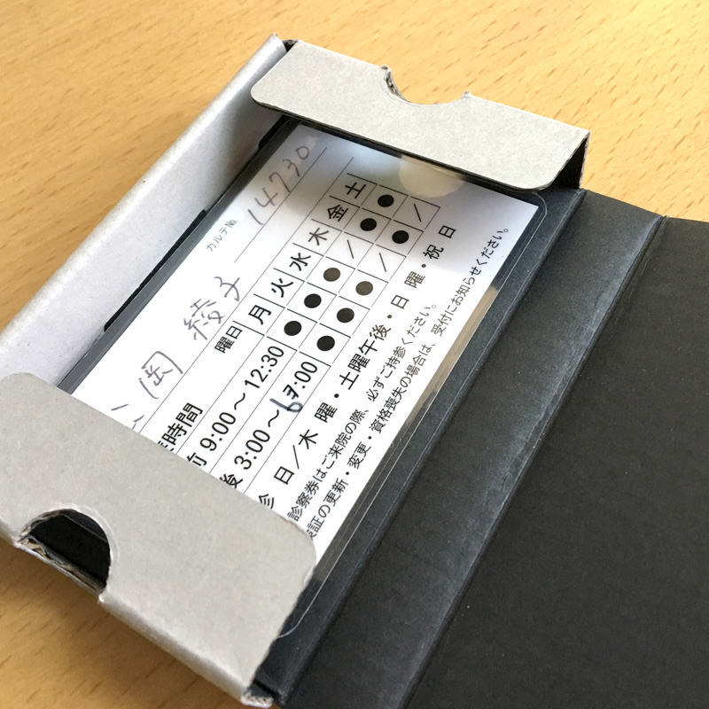 余裕がある分、たとえばラミネート加工してある診察券とかも入るよ。フチが大きすぎると入らないけど。