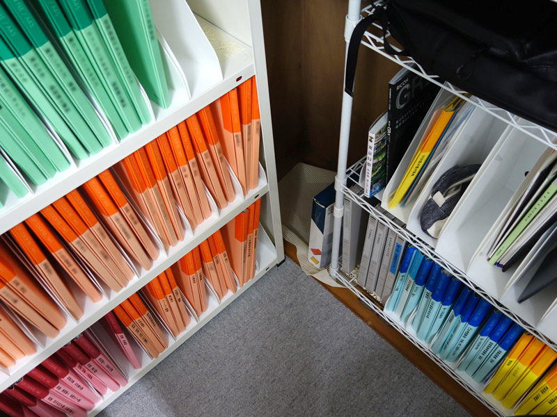 WORKERS'BOXとは別のメーカーのファイルも使ってるんですけど、こっちも色を合わせてます。その方が見た目にも(探すのが)ラクなので。