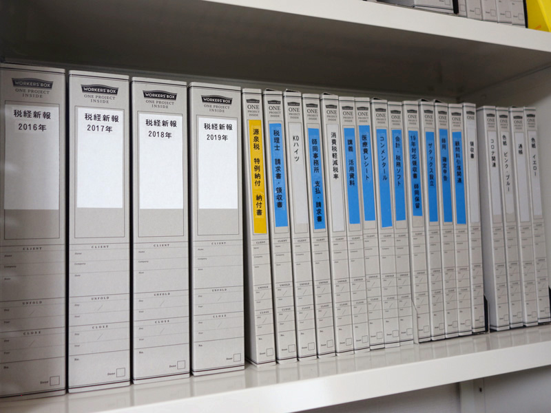 はい。フォルダーの色を変えられるので、WORKERS'BOX の背表紙と連動させてます。