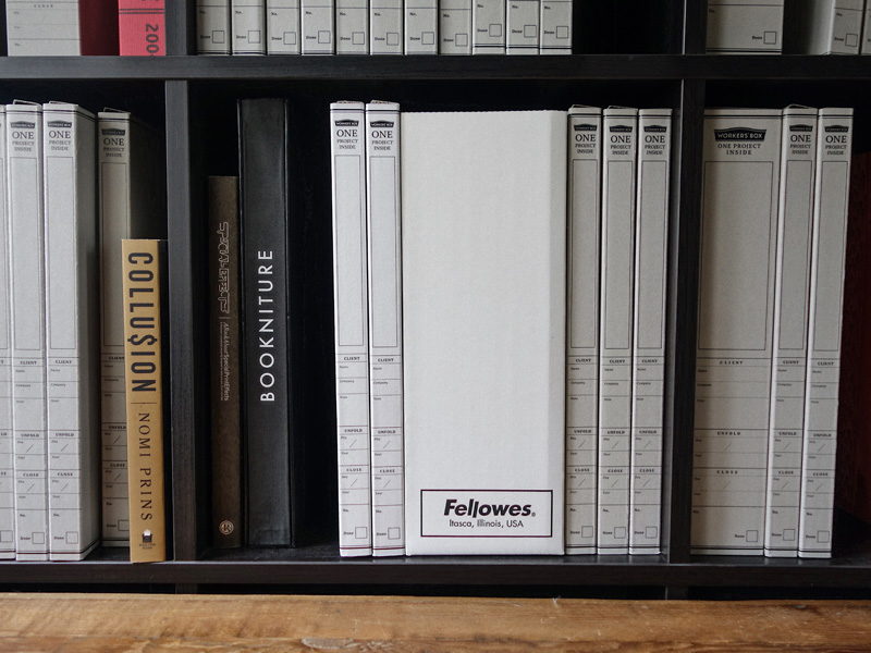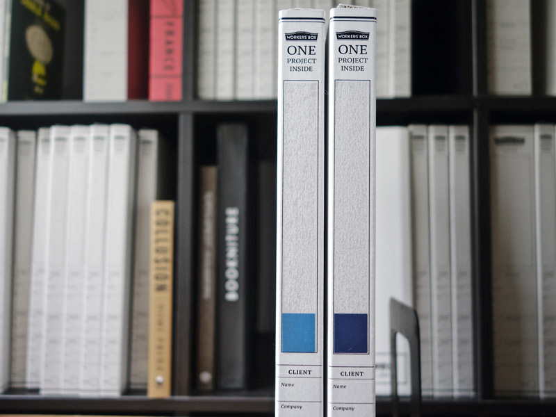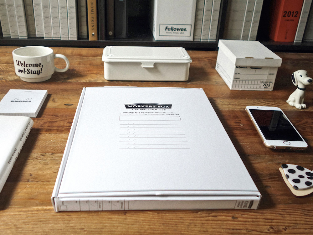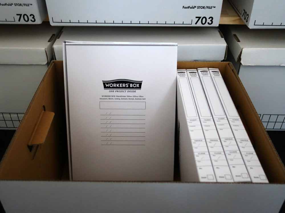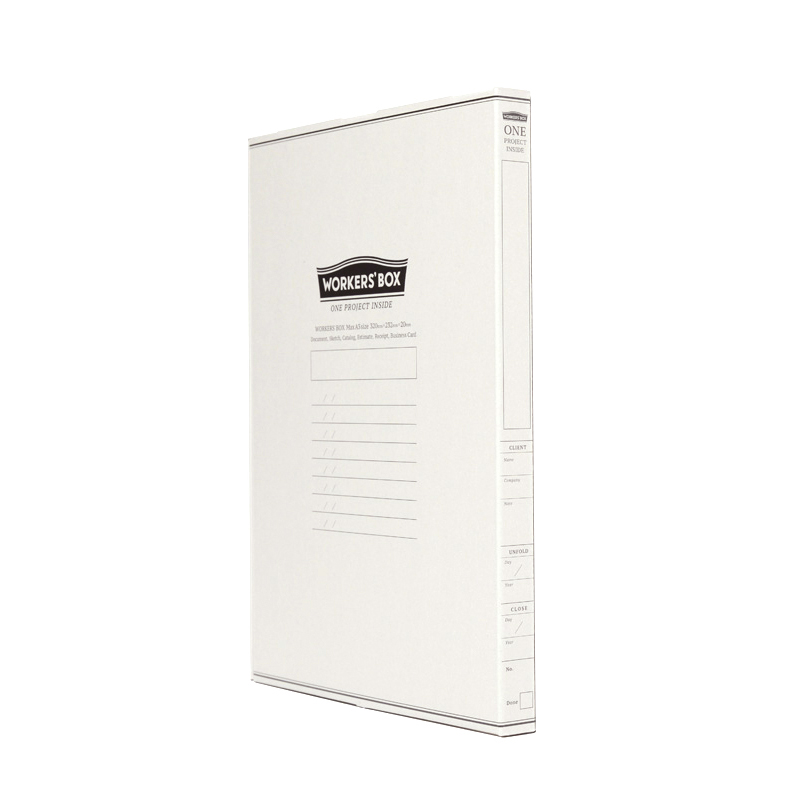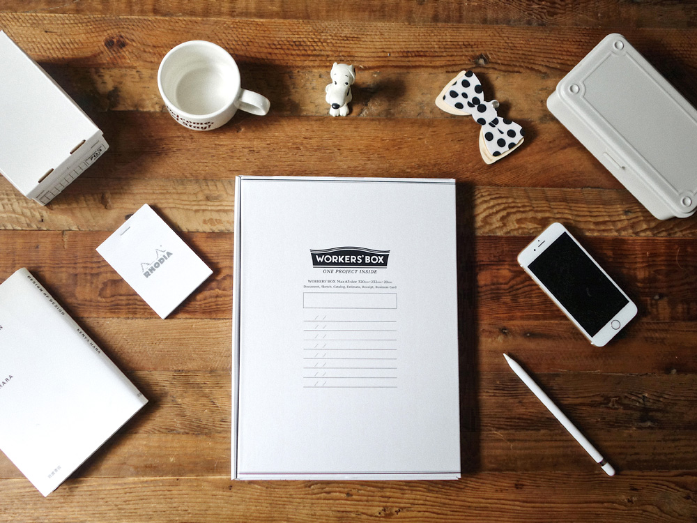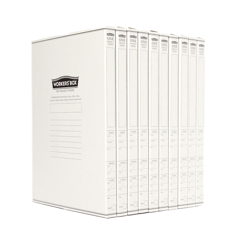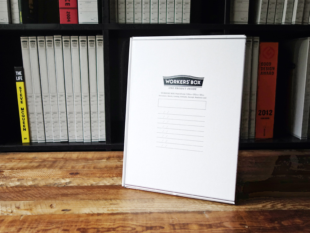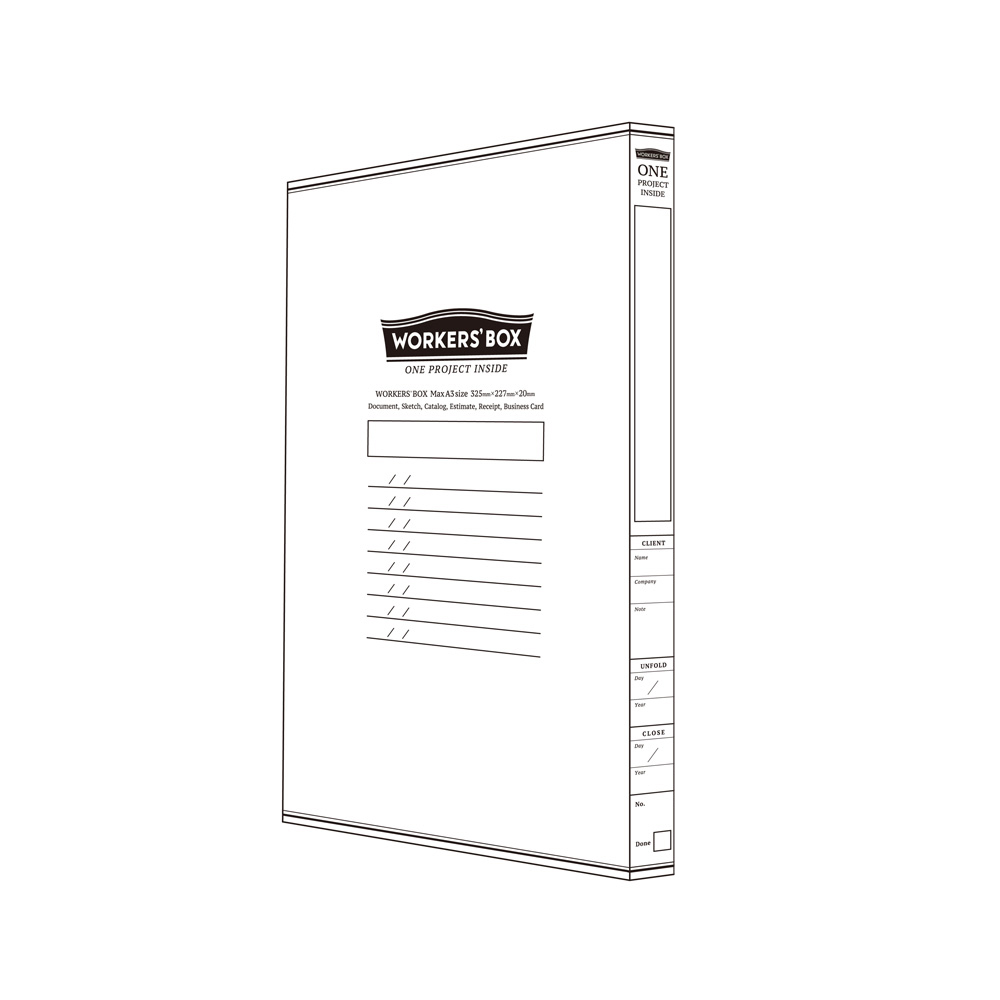 WORKERS'BOX は、プロジェクトに関する書類を大小まとめて放りこむだけでシンプルにデスクが片づき、仕事に集中できるワークツールです。